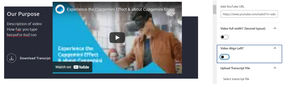 • You can align the video to the left or right-hand side using the Video Align Left option. Refer to the screenshot below.