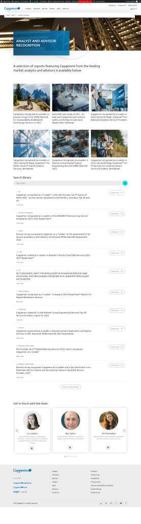The listing page is the “library” of all analyst recognition published on the website. These can be filtered to the search functionality