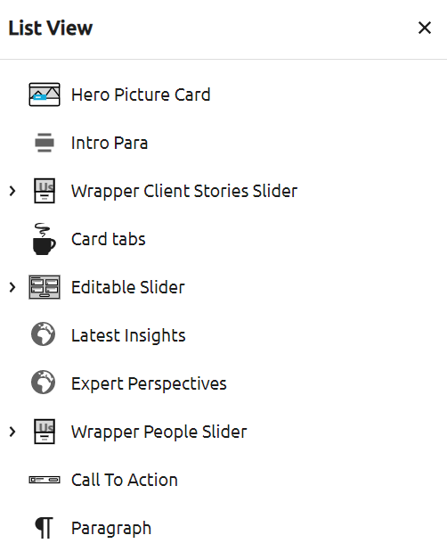 To start, the below screenshot shows the structure of the blocks that are recommended to use while creating the industry page.