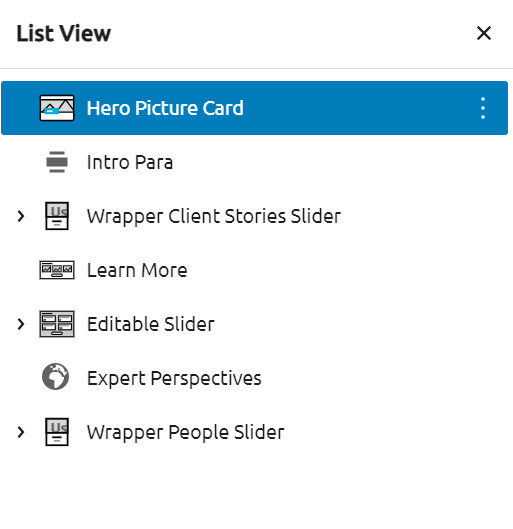 To start, the below screenshot shows the structure of the blocks that are recommended to use while creating the services page.