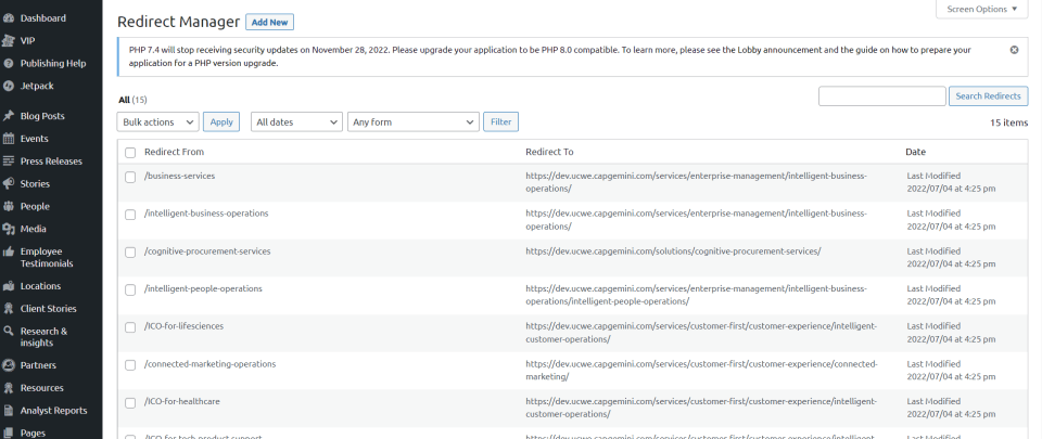 Redirects (301 errors) are used to send the site visitors from one URL to another when migrating/replicating from global to local.
