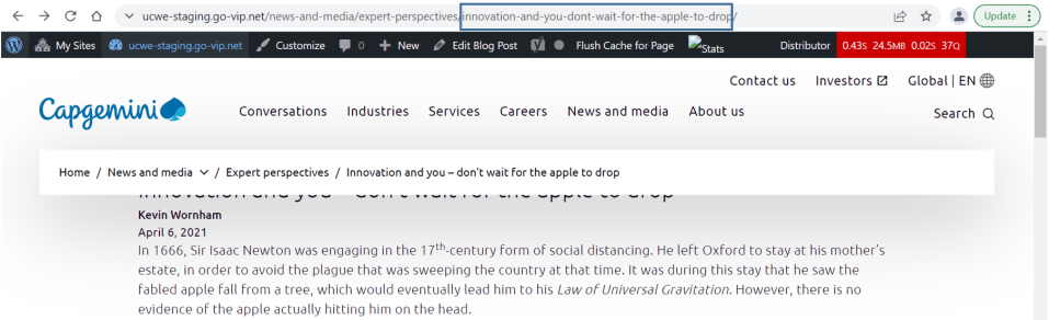 For eg: below is the SEO title for the industry (Smart Mobility) page. Here Title will be the title of the post while the Site title will be Capgemini.