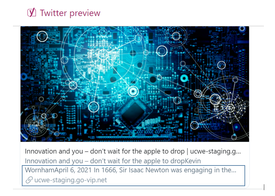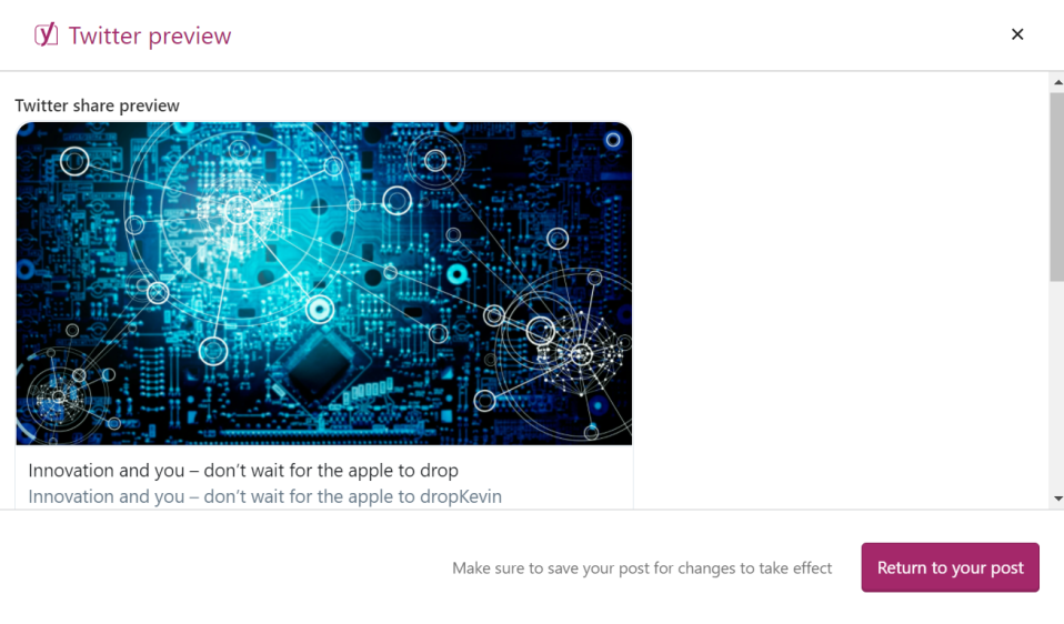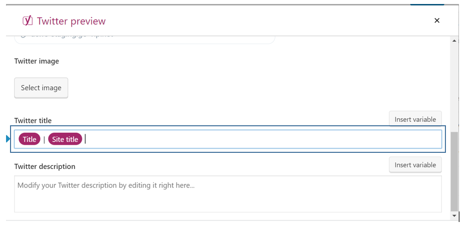 With Twitter preview, you can have a quick preview of your post that you want to share on Twitter and can even optimize its presentation to attract your target viewers. With the Twitter preview feature, you will have the flexibility to set a specific title, add a Twitter description and select the desired image for each post or page that you are sharing on Twitter. Here also, you can set one standard structure for all of your posts, if you want.