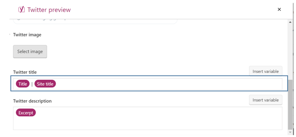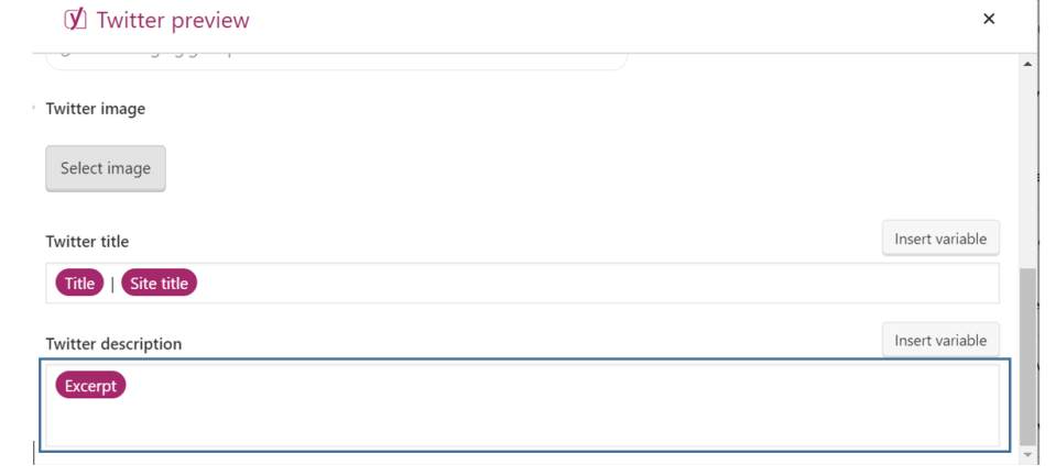 In the Twitter description field, you need to insert an excerpt, and the description for the post will be automatically created.