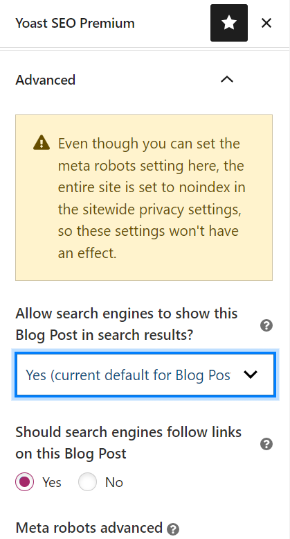 Using this feature, you can choose what posts or pages you want the search engines to show in the search results. You can choose Yes from the dropdown to make the post or page visible in the search results, and No to not allow the search engine to display it in the search results.