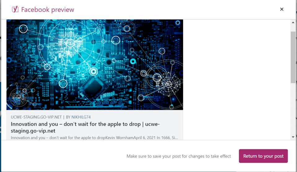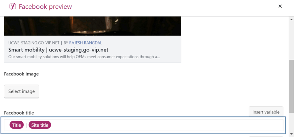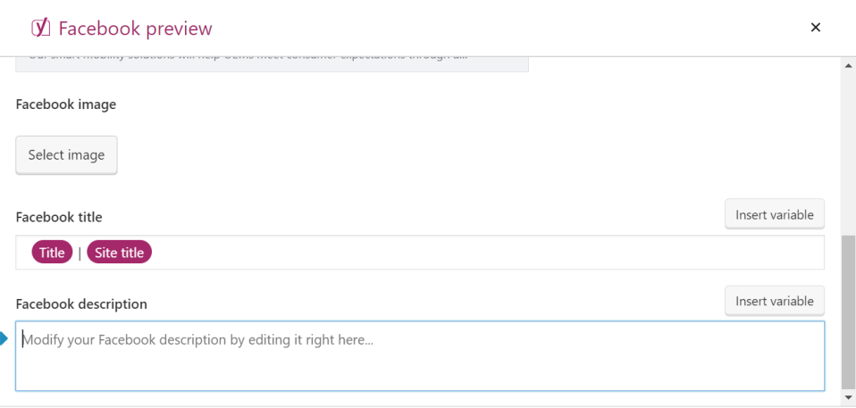 With Facebook preview, you can optimize the presentation of your content to make it look good while sharing on Facebook. With Facebook preview, you will have the flexibility to set a specific title, add a description and select the desired image for each post or page that you share on Facebook. Here also, you can set one standard structure for all of your posts, if you want.