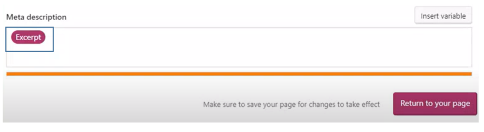 In the meta description field, you need to insert an excerpt, and the meta description for the post will be automatically created.