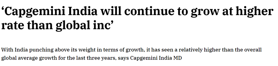 • Capgemini India will maintain a higher growth rate for any Digital Transformation