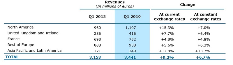 Paris, April 25, 2019 – Capgemini Group achieved consolidated revenues of €3,441 million in the first quarter of 2019, up 6.7% year-on-year at constant exchange rates*.