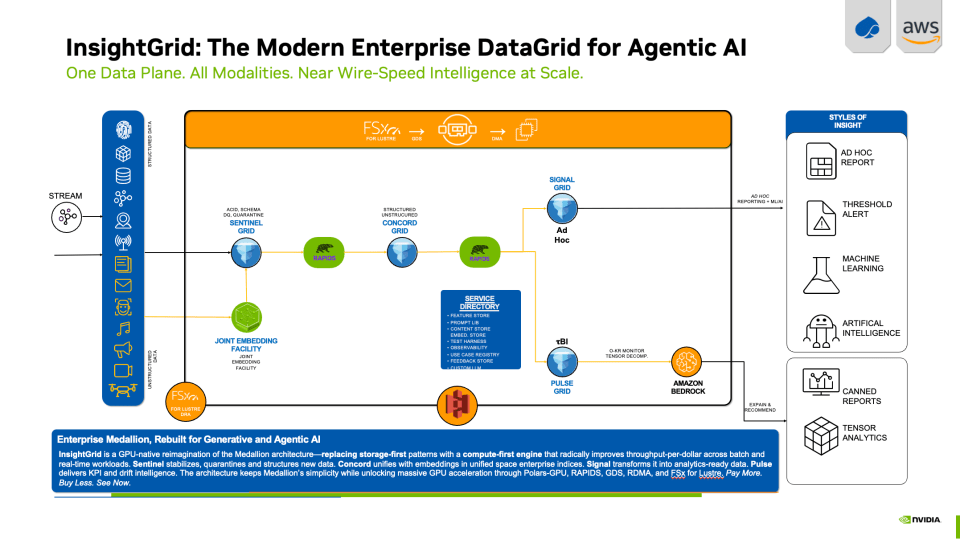 Capgemini is building InsightGrid in collaboration with AWS and NVIDIA, with support from the AWS Generative AI Innovation Center (GenAIIC) Partner Innovation Alliance, integrating it into enterprise transformation programs as the foundation for the AI Factory.