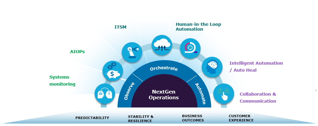 So, how do you adopt AIOPs (AI and ML) in IT operations and glean actionable insights from data generated by various IT assets and IT systems users?  To simplify your AIOps implementation approach, we recommend framing the application of AI across three key pillars – observability, orchestration and automation.