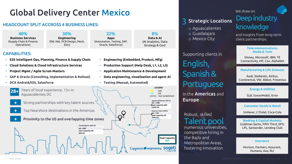 • Capgemini has over 28 years of presence in Mexico, and 13 years in Aguascalientes