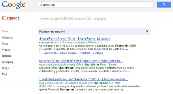 Para el usuario esto significa que se le va a ahorrar tiempo y trabajo en navegación y búsqueda; para las empresas, significa ceder el control de la propia imagen en Internet, porque lo que los usuarios compartan sobre ellas en la red será prioritario a la hora de otorgar PageRank.  Esta nueva realidad puede comprobarse ya al hacer cualquier búsqueda. Pongamos por ejemplo la búsqueda de la palabra “Sharepoint” para el idioma español  en Google: el primer resultado es el sitio oficial de Microsoft; el segundo, la entrada del término en la wikipedia, que cualquier usuario de Internet puede modificar; el tercero, un post en un blog, titulado: “Cinco razones para no usar Sharepoint 2010”.