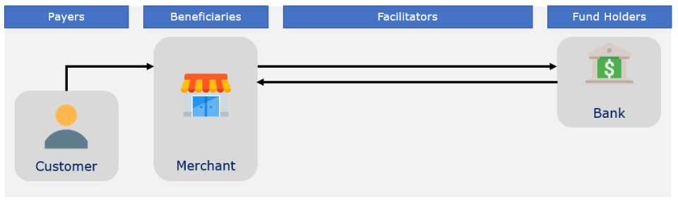 Un buen ejemplo de esto es el proceso de pago para las compras en línea. Si hacemos compras en línea, el pago es realizado por facilitadores que obtienen el pago de la cuenta bancaria (imagen 1). Para este servicio, los facilitadores piden una cuota de los comerciantes, que se puede incluir en el precio de venta al por menor. Este proceso se puede simplificar en una configuración de banca abierta en la que se da permiso al comerciante para acceder directamente a la cuenta bancaria (imagen 2). En ese caso, normalmente no hay cargos adicionales. Este no es el estándar todavía, pero esto en última instancia tendrá sus efectos sobre los intermediarios en el proceso de pago, ya que deben cambiar su posición dentro de la cadena de valor de pago. En previsión de estos cambios, los proveedores de servicios de pago (PSPs) deben posicionarse en el mercado de pagos de tal manera que creen un valor adicional para su cliente, tanto B2B como B2C.