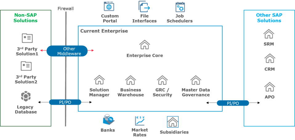 Realmente no puedes comenzar nada cuando tienes un lío alrededor de tu núcleo empresarial. Con múltiples fuentes de datos alimentándolo, la redundancia de datos es inevitable. Las múltiples tecnologías de integración lo hacen aún más complejo. Entonces, el primer paso es revisar y rediseñar su entorno empresarial, determinar qué es redundante y evaluar la necesidad. Es necesario armonizar muchos desarrollos personalizados no deseados y datos maestros duplicados durante décadas. La consolidación de múltiples entornos e instancias también se debe tener en cuenta durante el ejercicio, si es posible. En el futuro, esto solo hará la vida más fácil.
