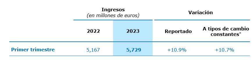 • Ingresos de €5,729 millones, +10.9% a tipos de cambio corriente y +10.7% a tipos de cambio constantes*