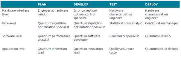 Naar mate de tijd verstrijkt, zullen specialisaties ontstaan binnen quantum software-rollen die invulling geven aan door volwassenheidsniveau en door applicaties gedicteerde requirements. Ontwikkelingen in hardware zoals foutcorrectie, optimal control of quantum-geheugen, en ontwikkelingen in software zoals orkestratie-platforms en algoritme-bibliotheken maken de weg vrij voor computerwetenschappers en domein-experts om quantum applicaties te ontwikkelen binnen grotere workflows van berekeningen. Deze workflows worden in toenemende mate geïntegreerd in high performance berekeningsinfrastructuren en verbonden met traditionele softwarelifecycles.