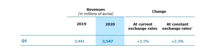 Paris, April 28, 2020 – Capgemini Group posted consolidated revenues of €3,547 million in the first quarter of 2020, up 2.3% year-on-year at constant exchange rates*.