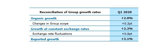 Organic growth, or like-for-like growth, in revenues is the growth rate calculated at constant Group scope and exchange rates. The Group scope and exchange rates used are those for the reported period. Exchange rates for the reported period are also used to calculate growth at constant exchange rates.