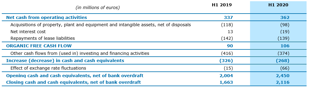 The Group generated organic free cash flow* of €106 million, compared with €90 million in 2019, despite the increase in financial and other operating expenses related to the acquisition of Altran.