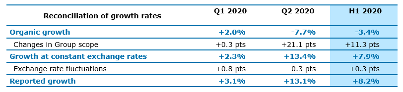 Organic growth, or like-for-like growth, in revenues is the growth rate calculated at constant Group scope and exchange rates. The Group scope and exchange rates used are those for the reported period. Exchange rates for the reported period are also used to calculate growth at constant exchange rates.