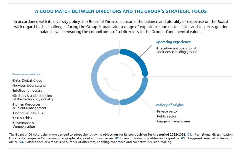 The Board of Directors seeks to implement a balanced governance structure tailored to Capgemini and able to adapt to the circumstances and challenges specific to the Group.