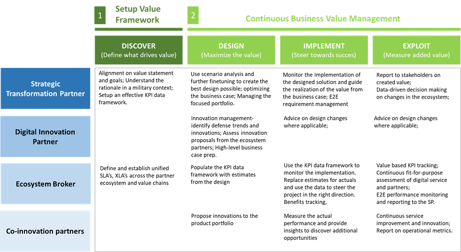 Successful partnerships don’t just happen, they require careful planning. Strategic partnerships can help early on in defining the digital roadmap, managing progress and above all managing the value creation from an evolutionary partner ecosystem. Establishing such strategic partnerships is not simply a question of setting up a legal structure or investment terms. In the previous Expert Perspective on “Digital Mastery in Defense” the importance and characteristics of a good digital strategy was the main topic. This article shows that the next step is then to execute this digital strategy through a partnership framework enabling a best-of-breed partner ecosystem which serves the defense services across all operational domains and leads to best-in-class digital solutions.