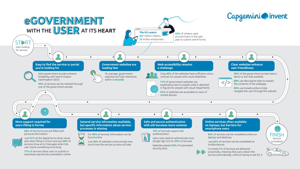 For example, while 84% of services for national users in Europe are fully online, only 49% of services for cross-border users are similarly available. Further, we discover that businesses enjoy better online government services than citizens.