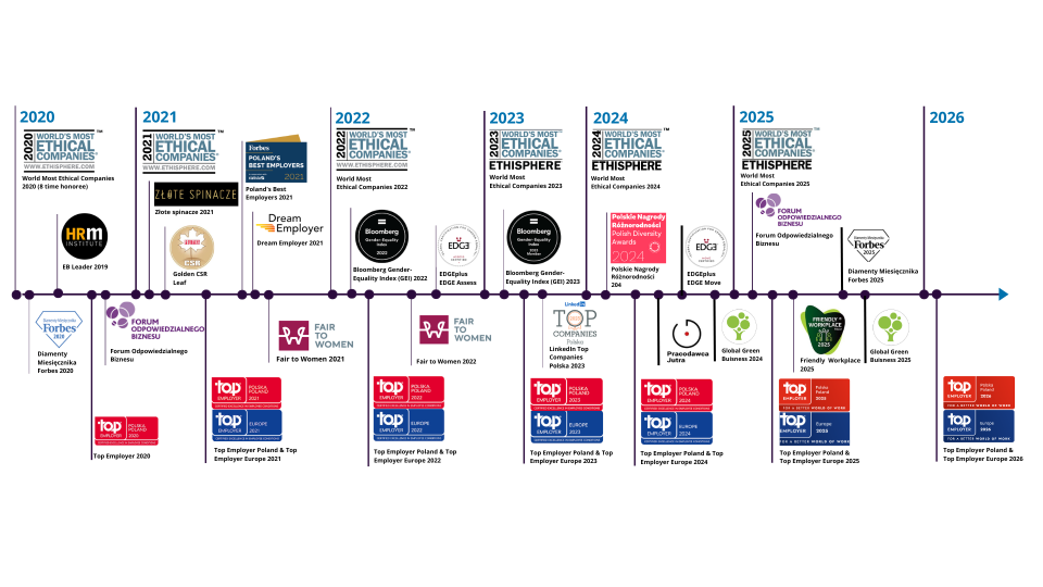 Jesteśmy uznawani za jednego z najlepszych pracodawców w sektorze IT i usług biznesowych w Polsce. W 2019 roku organizacja znalazła się wysoko w rankingu Rzeczpospolitej, oraz na liście Diamentów Forbesa 2020, wśród najlepiej rozwijających się i aktywnych firm w kraju. Firma jest też na liście 15 najlepiej ocenianych pracodawców w Polsce w kategorii biznes w rankingu profesjonalistów 2019 HRM Institute, badającym wymarzonego pracodawcę.