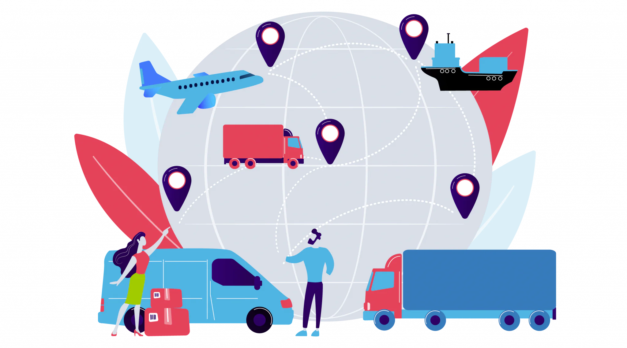 ikona z kulą ziemską i przedstawieniem różnego rodzaju transportów