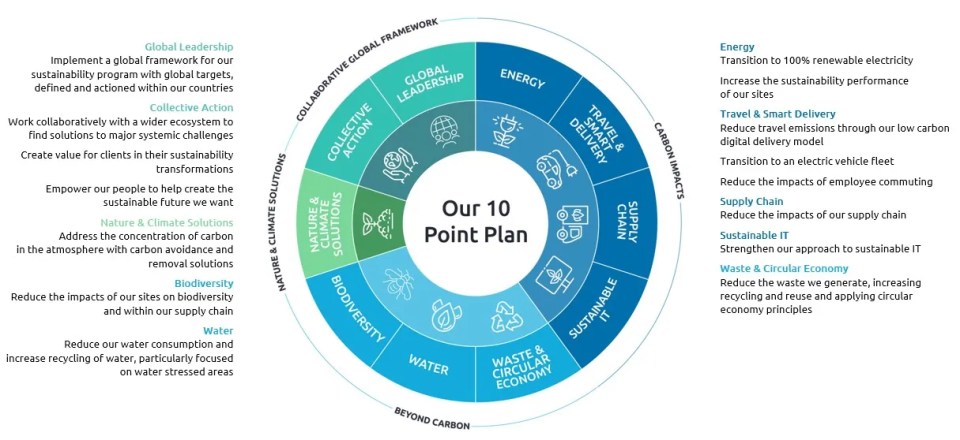 As a responsible business, we’re determined to play a leadership role in ensuring technology creates a sustainable future. We drive internal change across every aspect of our operations, while helping our clients address their own environmental challenges. We also team up with our partners and suppliers, start-ups, policy-makers, governments and academics, to make sustainable progress together aligned to the goals of the Paris Agreement.