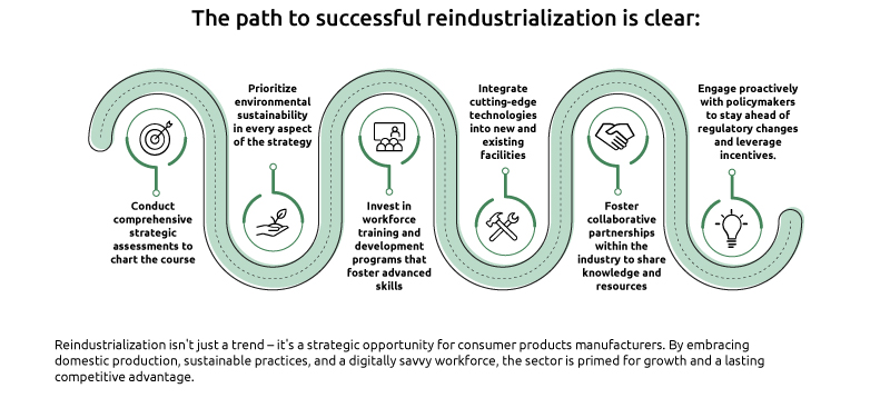 Reindustrialization isn’t just a trend – it’s a strategic opportunity for consumer products manufacturers. By embracing domestic production, sustainable practices, and a digitally savvy workforce, the sector is primed for growth and a lasting competitive advantage.