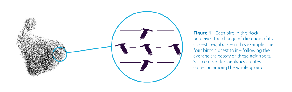 Step by step, all of the birds follow a coherent trajectory. This is an example of analytics inherently embedded in each bird’s brain that enables the flock to be resilient to external threat and change.