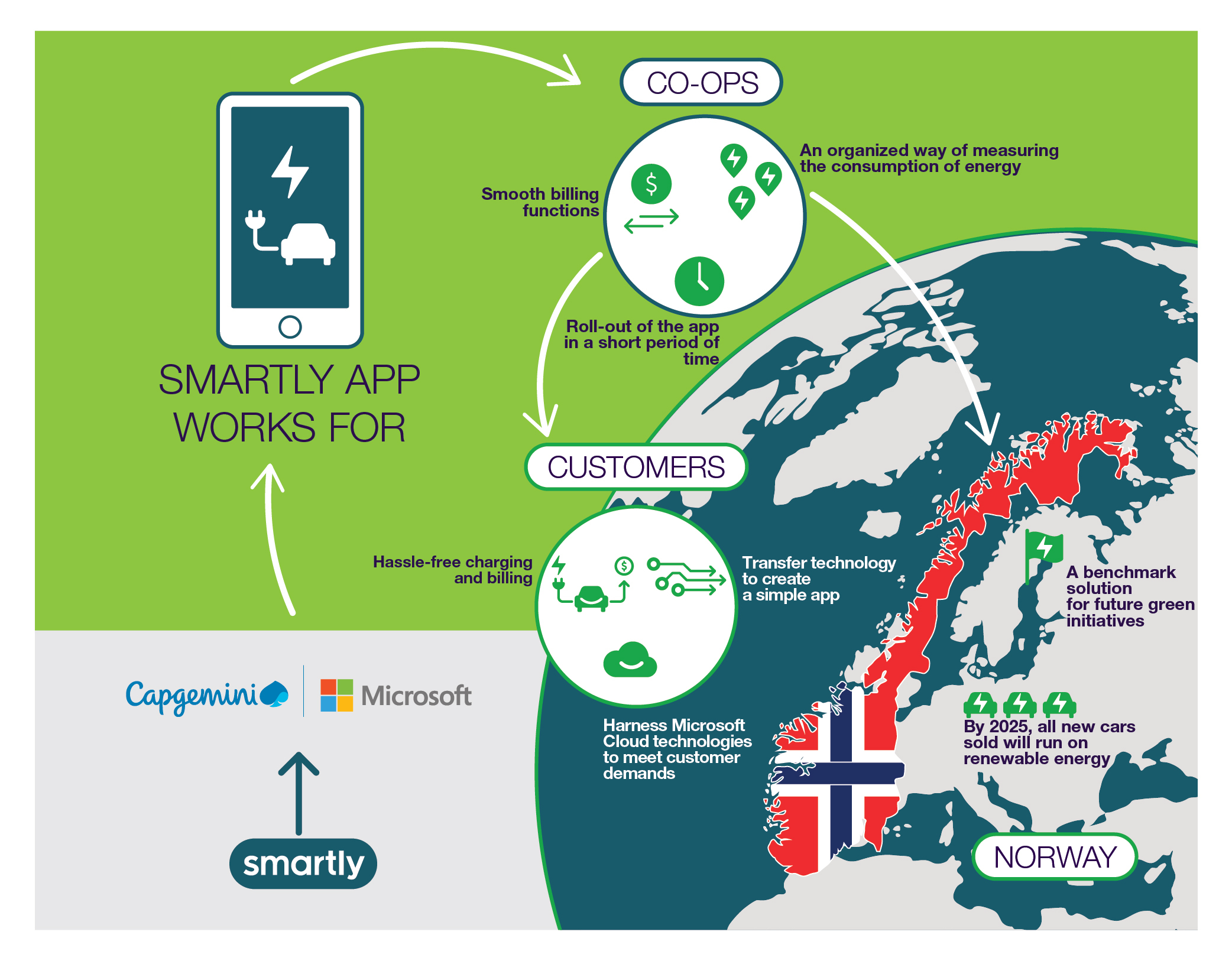 “Capgemini made it easy to transfer complex technology into one user-friendly app. We are very excited to be the first company to offer this transparent charging service to our customers,” says Ketil Granbakken, Director of Sales and Marketing, Smartly AS.