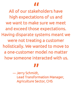 Customers expect a connected journey, personalization, and innovation. CHS wanted to create a better experience at every step. The SAP platform provided this starting point by allowing customers to access the company via a One CHS portal and receive a consistent experience.