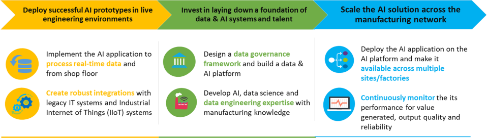 The report concludes by outlining recommendations to scale AI in manufacturing operations (see the figure below):