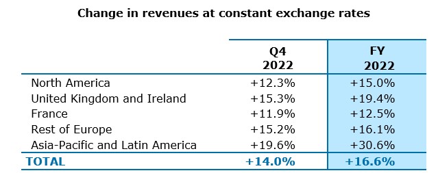 All Group regions posted double-digit growth at constant exchange rates in 2022, driven by strong underlying momentum visible across almost all sectors.